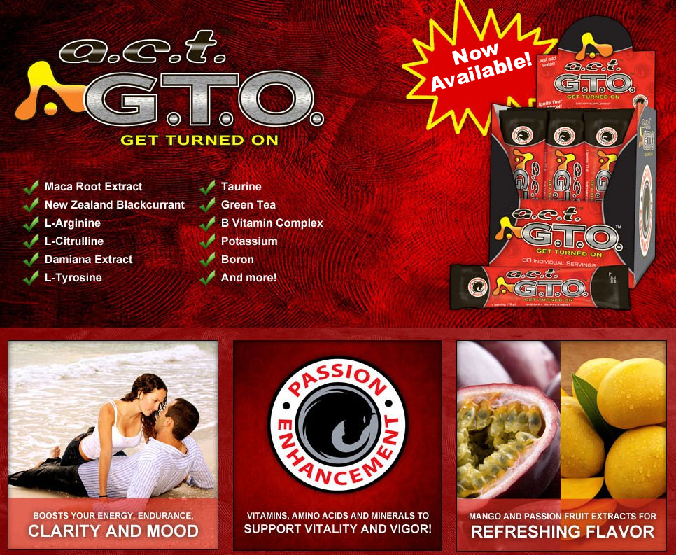 A.C.T.™ G.T.O.™ is an all-natural, proprietary blend of vitamins, amino acids, herbs, and other nutrients that have been shown to promote a healthy libido.